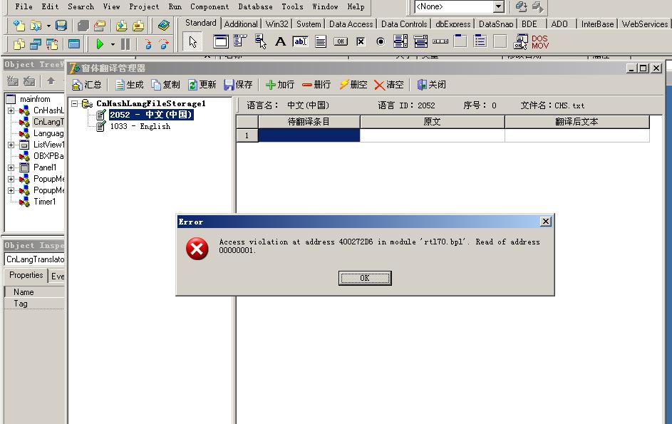 此问题已修正,TeeChart组件中的TChartSeriesList子对象不知何故无法获得其类型信息(使用GetTypeData),因此导致了出错,目前的解决办法是用try except 屏蔽,;)