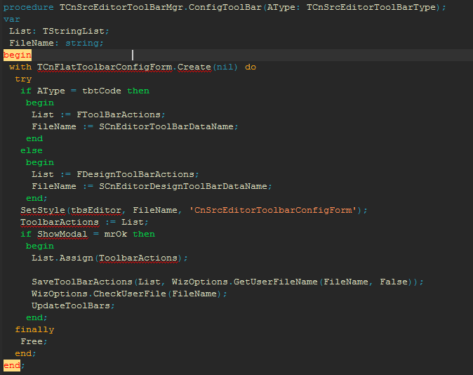 But now the problem! It can not find TCnFlatToolbarConfigForm in cnwizards-master\Source\SrcEditorEnhance\CnSrcEditorToolBar.pas (TCnSrcEditorToolBarMgr.ConfigToolBar).