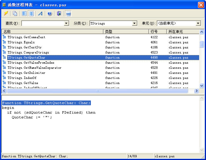比如我现在学到TStrings类时,就导出来,想每个学一下.(呵呵,是不是很笨)