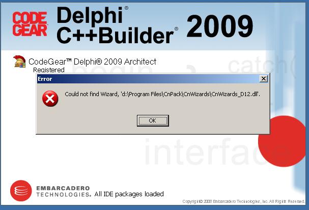 安装了包之后,启动DELPHI2009会有如附件所示问题,请问是什么问题。