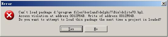 2. Delphi启动提示can't load package dclib70.bpl