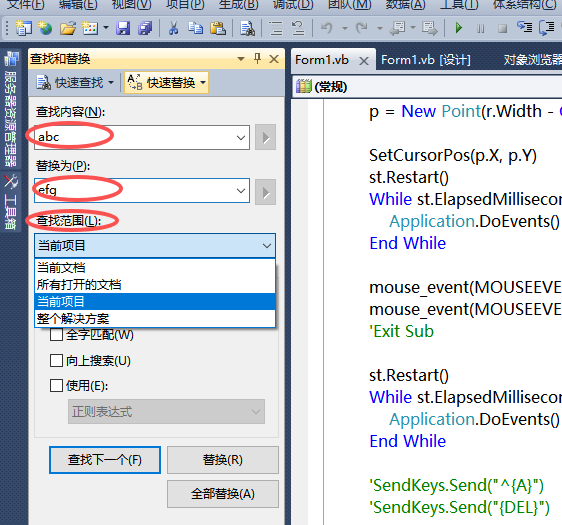 建议代码替换增加在当前过程或函数中替换的选项