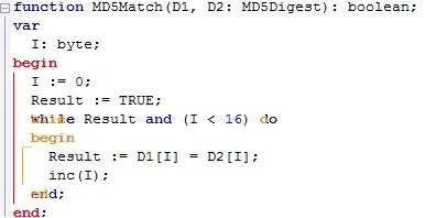 function MD5Match(D1, D2: MD5Digest): Boolean;