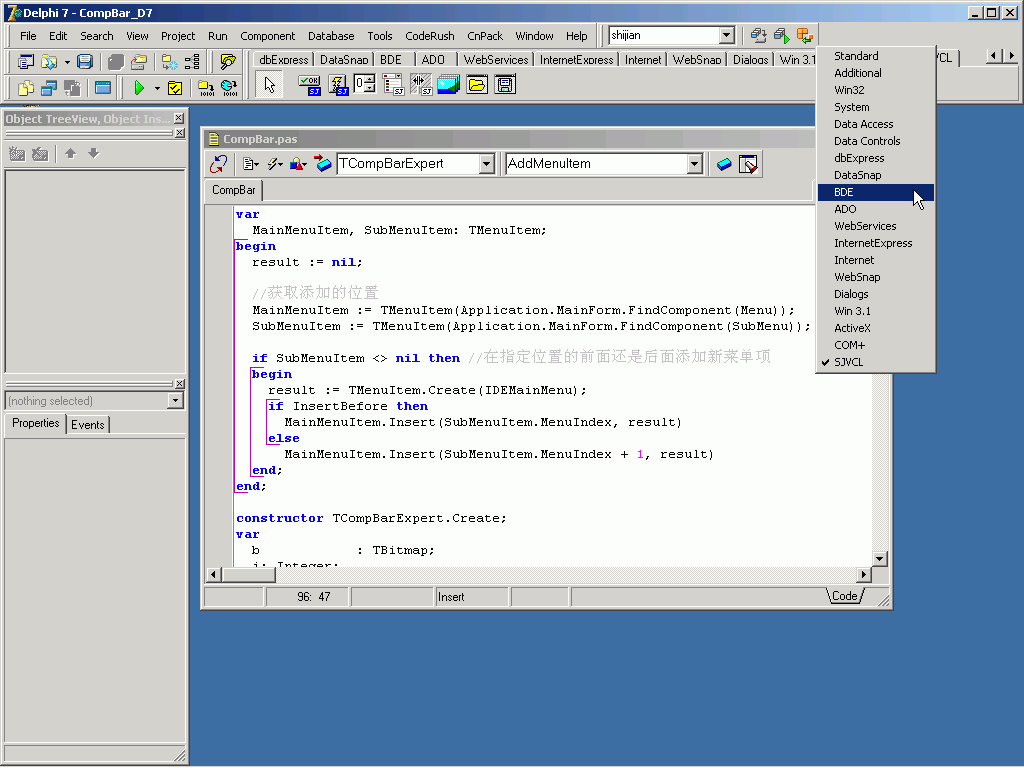 什么区别,仅仅不过就是CnPack直接借用了Delphi自己的IDE菜单,而我是另外新建了一个TPopupMenu,