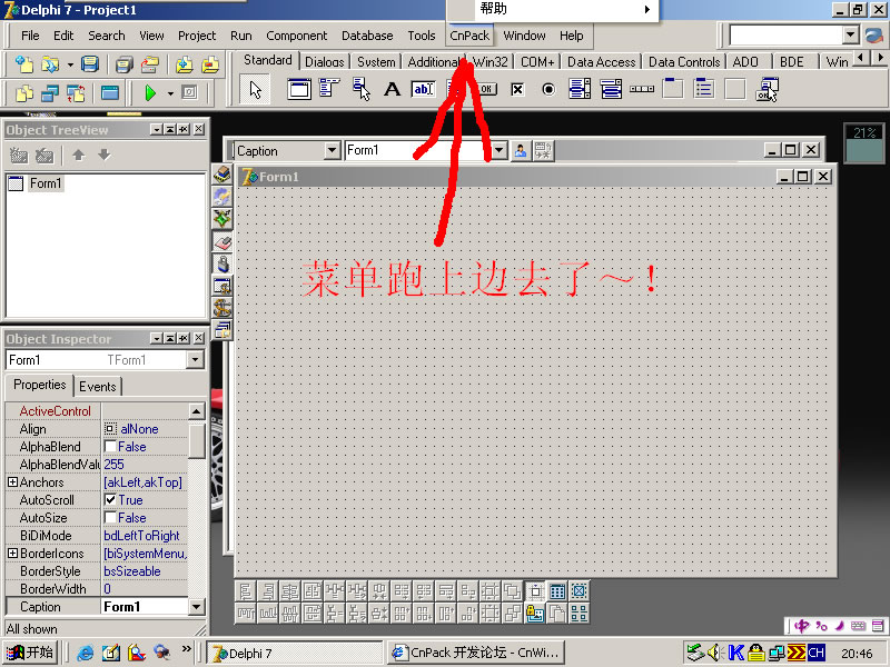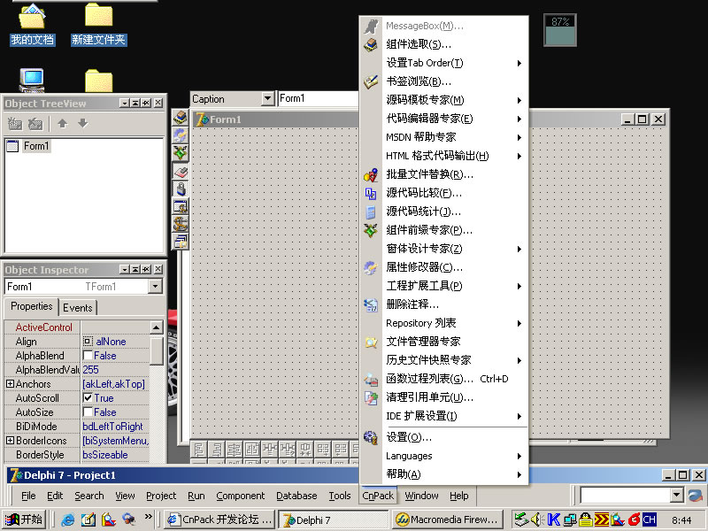 CnWizards在Delphi中的CnPack菜单可能过长,在有些小显示器上显示会不完全,建议做成可以折叠的。。。。