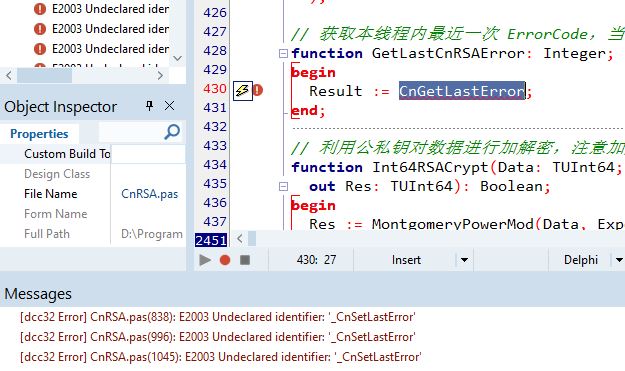 [dcc32 Error] CnRSA.pas(534): E2003 Undeclared identifier: '_CnSetLastError'<br />