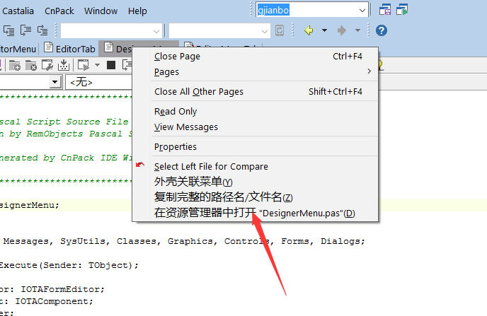 我想在IDE添加TAB页头添加右键菜单 用脚本可以实现吗? 如下图所示