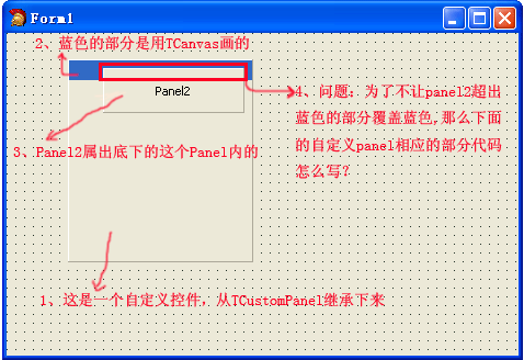 我也试了另一种方法,继承TCustomPanel的GetclientRect,得到的clientRect将Top加大,发现内部的Create的Panel可以不覆盖蓝色的部分,但是如下面的图左边的dxNavBar1Group1Control实际上也是一个Panel,但是当一出现上下滚动条时(滚动条工作方式是offsetRect(aRect,dx,dy)),还是会覆盖蓝色的部分,很怪