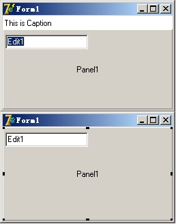在上面的图中上面的是运行的效果,下面的是设计时候的效果。我不知道这个是不是楼主所需要的效果,我为了偷懒,没有写一个自己的控件,而是简单的替代了TPanel,不然这个控件在设计的时候应该也和运行时一样有一个标题栏,而且标题栏是不能放东西的。