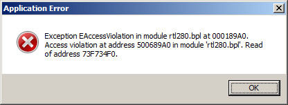 » EAccessViolation in module rtl280.bpl
