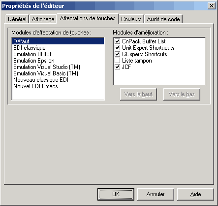 Tools/Editor options/Key assignment (third tab)/enhancement modules ?