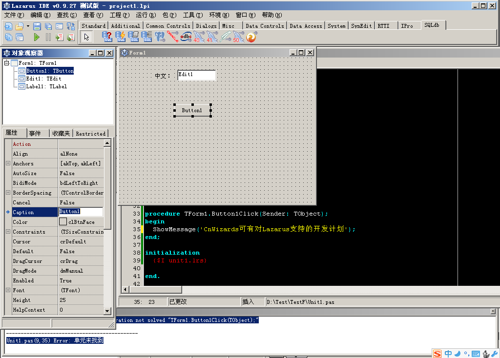 Lazarus 是一个开源的、基于 Free Pascal 编译器的集成开发环境(integrated development environment,IDE)。除了提供语法高亮编辑器、可视化设计器等之外,它还提供了一套与 Delphi 的 VCL 高度兼容的组件(component)库——Lazarus 组件库(Lazarus Component Library,LCL)。LCL 包含的许多组件,如窗体(forms),按钮(buttons)和文本框(text boxes)等等,都与 VCL 中的相应组件功能一致。使用这些组件,您可以创建基于图形用户界面(graphical user interface,GUI)的应用程序。