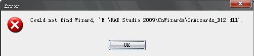 再然后是一个显示"Couldn't find wizard,"E:\XXX\CnWizards\CnWizards_D12.dll""这个对话框。