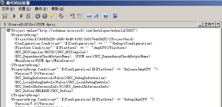 如图所示,dproj文件不是xml格式文件吗?用记事本打开显示正常,但为什么使用源代码比较器打开时前面的<?会显示乱码呢,另外如果此文件中包含中文字符(项目配置信息)时也是显示成乱码了,出现乱码后进行比较,明明两个相同的文件却显示有过修改,不明白了,请大家帮助解惑?