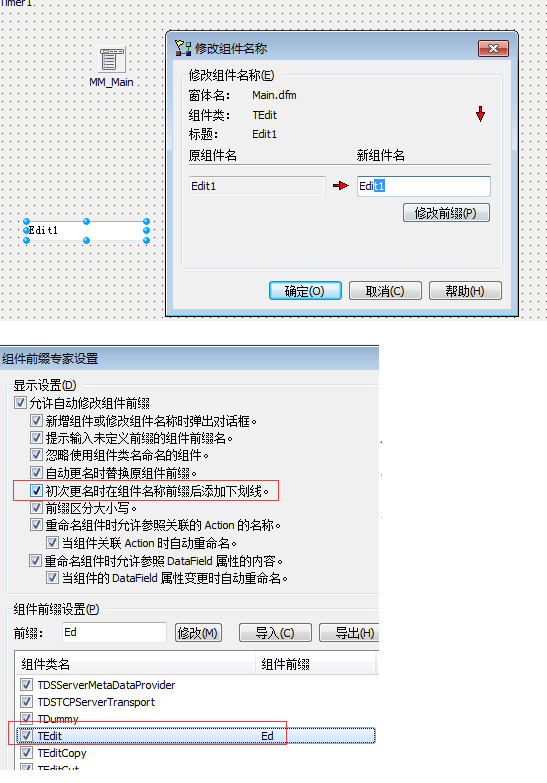 我设置了 Edit 的前缀是 ED 前也设置了下画线