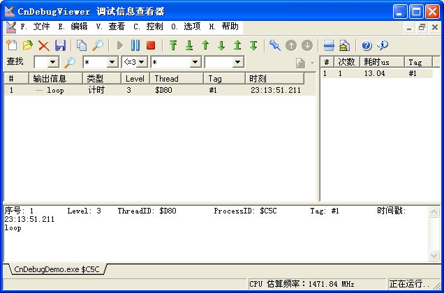 运行后在“调试信息查看器”看不到输出的信息,只看见计时器的信息