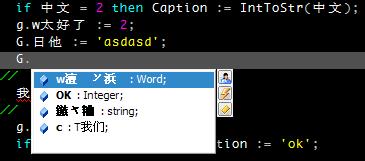 delphi 2006 2007已经支持中文变量 代码助手会出现乱码 应该UTF8Decode一下