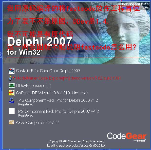 不会,我第二个例子就是delphispeed后启动的,重做了一个cnwizards的dll,把fastcode放在首位,然后关delphi,用新编译dll替换cnwizardsD11.dll,一点问题都没有,