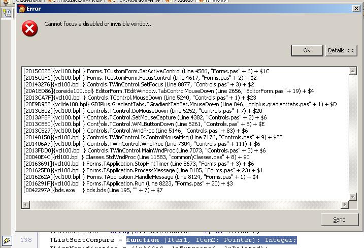 [2015C02E]{vcl100.bpl  } Forms.TCustomForm.SetActiveControl (Line 4586, "Forms.pas" + 6) + $1C