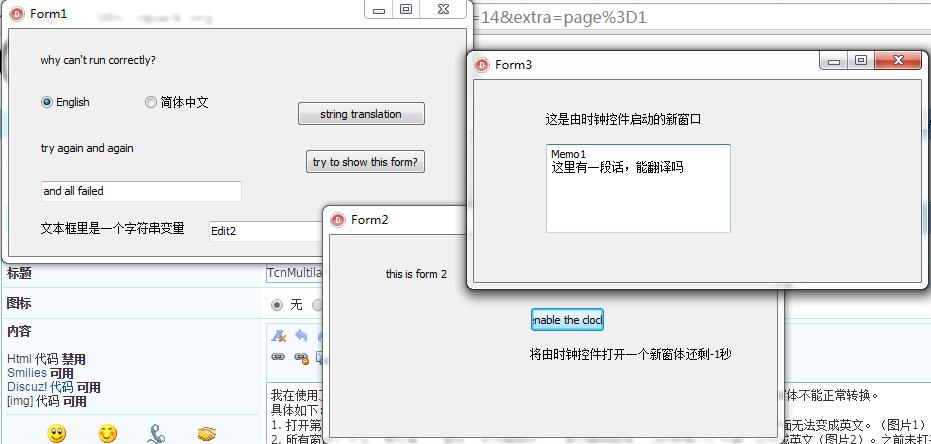 1. 多窗体不能正常翻译界面的问题。试验如下: