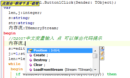 //D2007中文变量输入 点 可以弹出代码提示