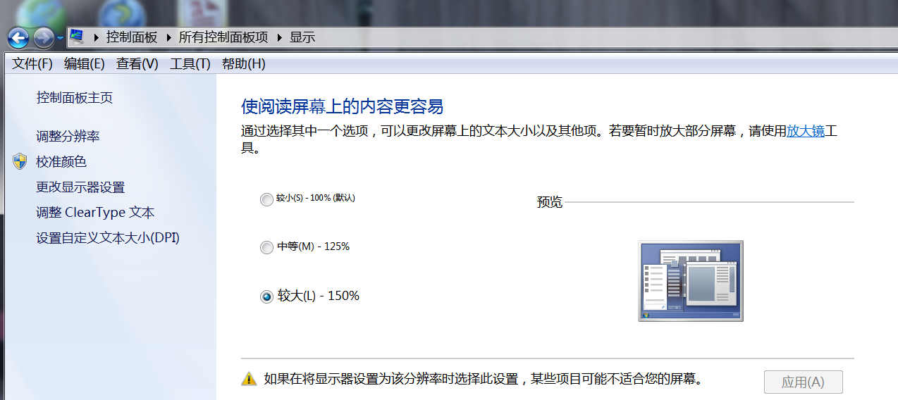 个性化,显示中,缩放比是 150 %<br />