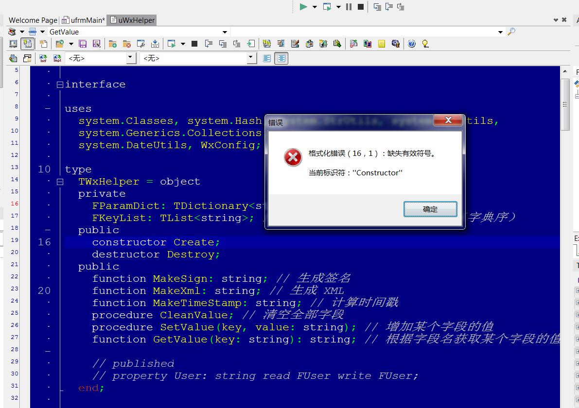 cnpack 格式化错误 缺失有效符号 当前标识符 constructor