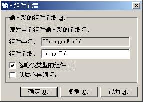 忽略后,退出Delphi,再看看C:\Program Files\CnPack\CnWizards\User下的Prefix.ini,看看Ignore节里头有无出现TIntegerField=1这一行?