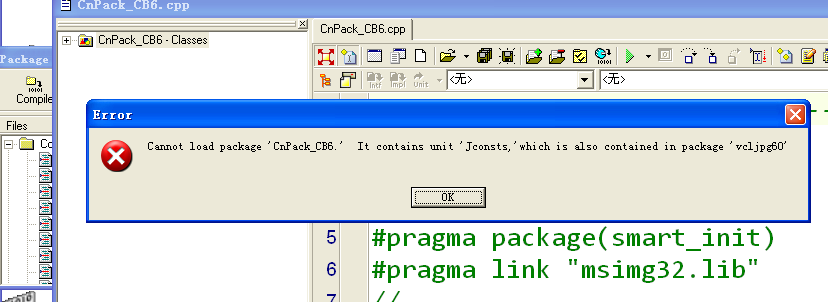 Cnnot load package 'CnPack_CB6.' It contains unit 'Jconsts,' whick is also contained in package 'vcljpg60'